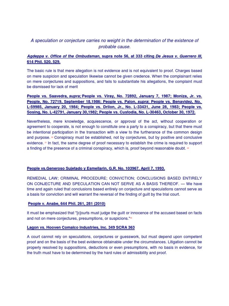 Speculation and Conjecture Cases PDF Evidence Burden Of Proof (Law)